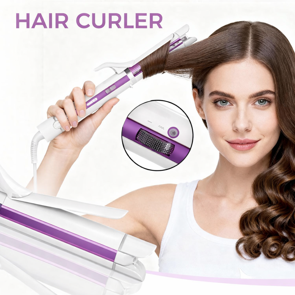Ofrece a tus clientes un producto versátil, moderno y de alta demanda. Esta planchita rizadora 3 en 1 permite crear cabello liso, ondas naturales o rizos definidos con una sola herramienta, ideal para uso diario y resultados tipo salón desde casa.